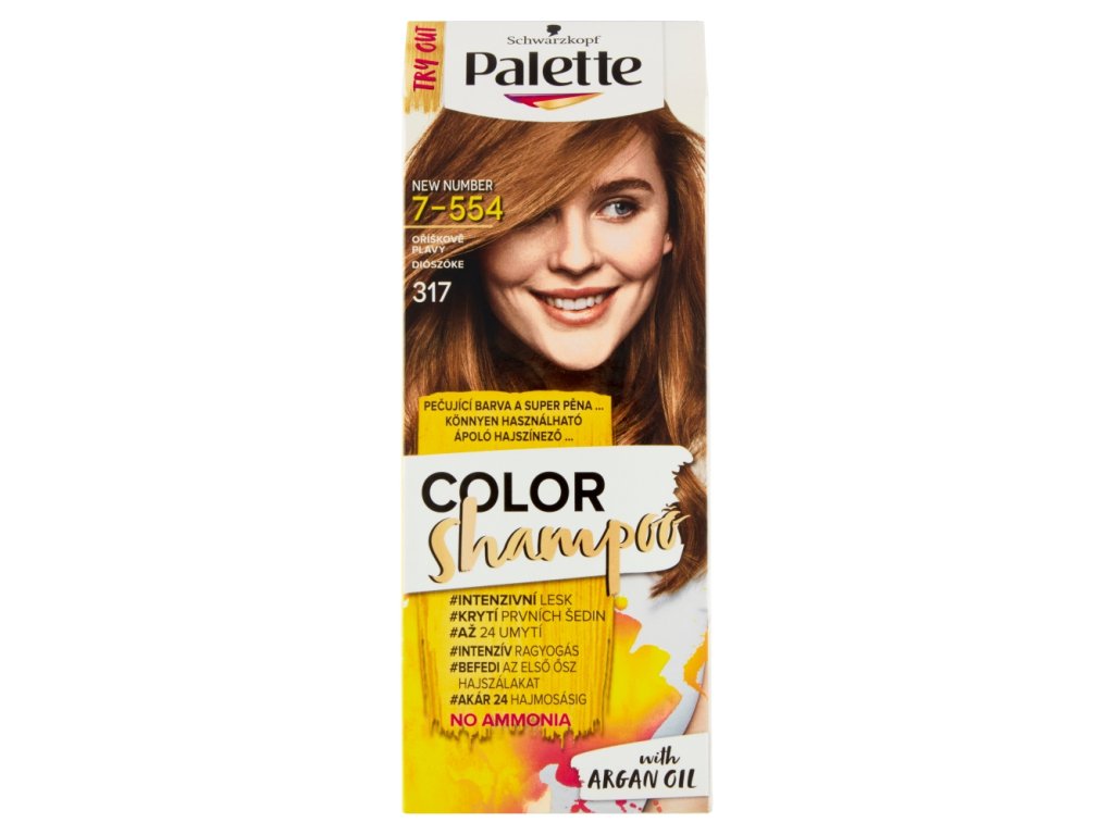 Specjalna formuła bez amoniaku, wzbogacona olejkiem arganowym, pielęgnuje włosy od nasady aż po końce podczas farbowania. Unikalne połączenie kremu koloryzującego i niskostężonego aktywatora (z wyjątkiem odcieni 320, 315, 321, 308, 317, 3%) sprawia, że szampon Palette Color jest znacznie delikatniejszy w porównaniu z innymi, bardziej skoncentrowanymi aktywatorami (6% i więcej). Dodatkowo, specjalne pigmenty zawarte w formule zapewnią włosom doskonały efekt kolorystyczny. Rezultatem są naturalnie wyraziste, zdrowo wyglądające włosy o wzmocnionym połysku.