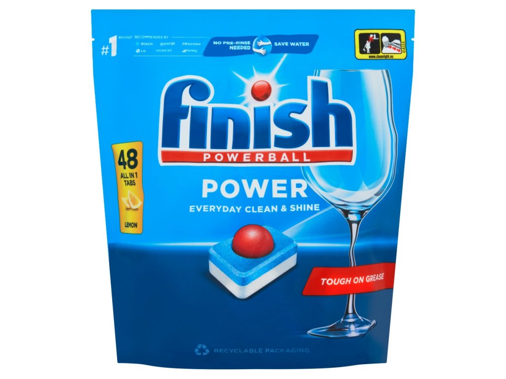 Finish PowerBall All in 1 Max Lemon poradzi sobie ze wszystkim, co stanie mu na drodze. Jego skuteczna formuła z PowerBall usuwa nawet przypalone resztki jedzenia, dzięki czemu zawsze uzyskasz najlepsze rezultaty za pierwszym razem. O cytrynowym zapachu.