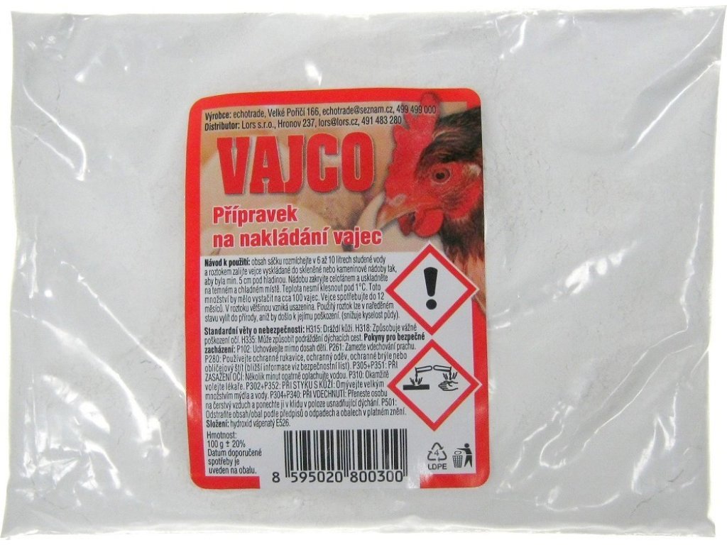 Zawartość torebki wymieszaj z około 6-10 litrami zimnej wody i zalej roztworem jajka umieszczone w szklanym lub kamionkowym pojemniku, tak aby jego głębokość wynosiła co najmniej 5 cm. Przykryj pojemnik celofanem i przechowuj w ciemnym i chłodnym miejscu. Temperatura nie może spaść poniżej 1°C. Ta ilość powinna wystarczyć na około 100 jajek. Jaja należy zużyć w ciągu 12 miesięcy. Roztwór zazwyczaj tworzy osad. Rozcieńczony roztwór można wylać do środowiska naturalnego bez ryzyka uszkodzenia (zmniejsza kwasowość gleby).