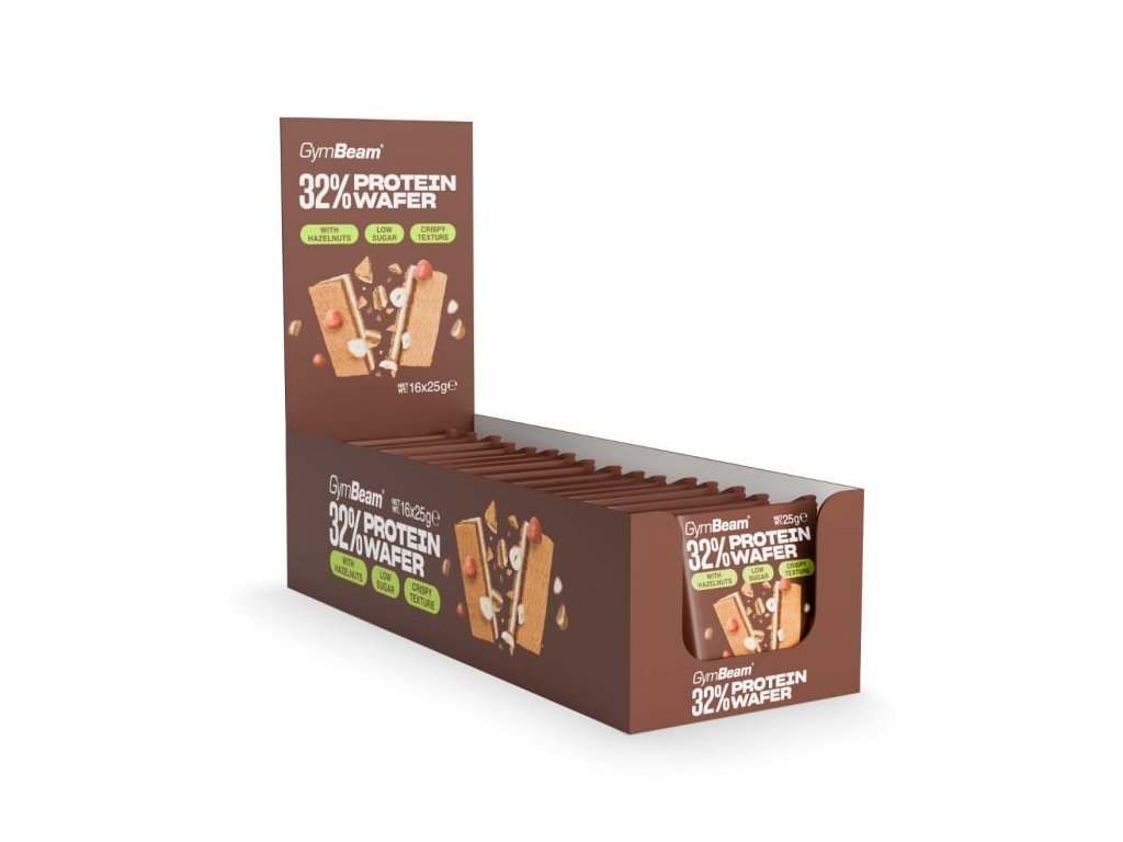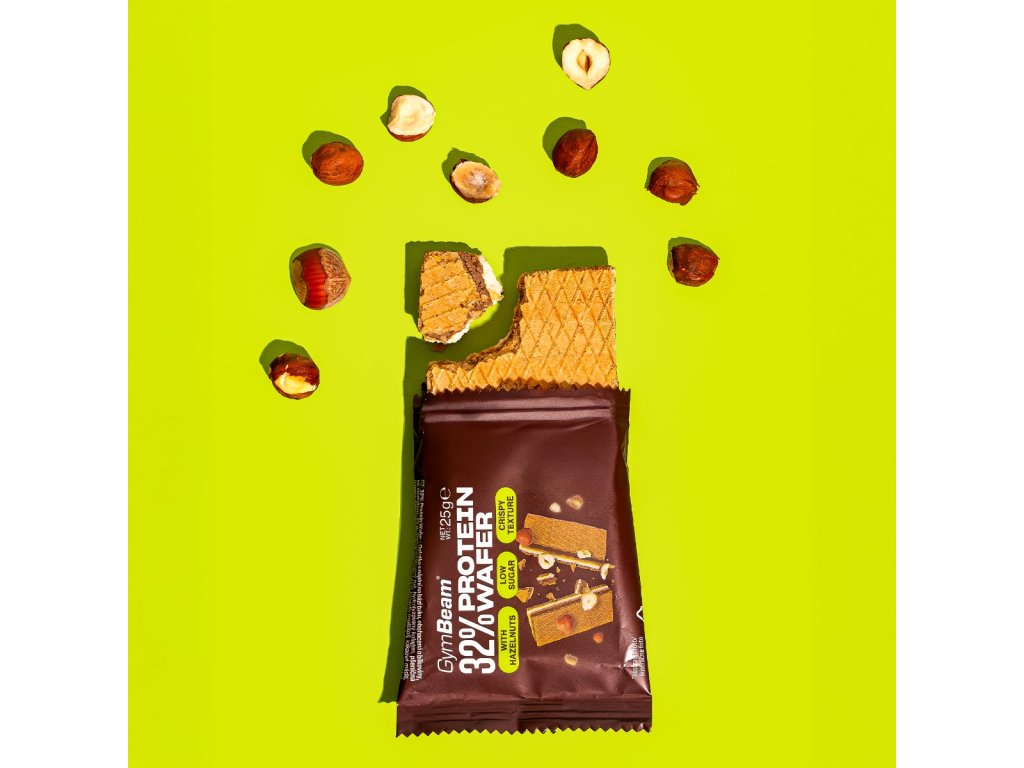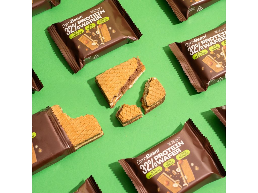 Wafelek proteinowy 32% – 3-warstwowy wafelek proteinowy o nieodpartym mleczno-orzechowym smaku, wysokiej zawartości białka i niskiej zawartości cukru