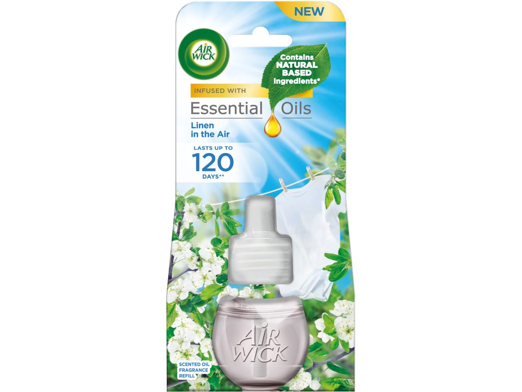 Uchwyca świeżość powiewającego na wietrze lnu z delikatnym aromatem zielonych jabłek. Zapach utrzymuje się do 75 dni przy stosowaniu 12 godzin dziennie przy najniższym poziomie intensywności zapachu. Użytkownik może kontrolować intensywność zapachu. Zawiera naturalne olejki eteryczne.