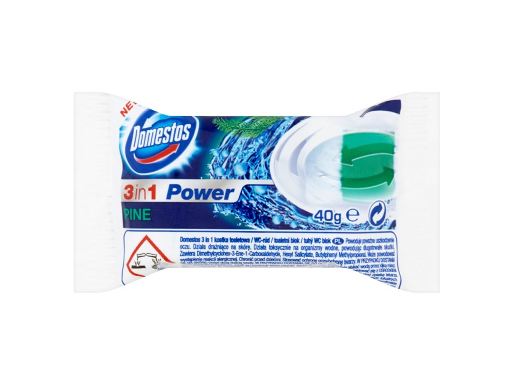 Stałe kostki toaletowe Domestos 3 w 1 składają się z trzech specjalnych warstw i łączą w sobie trzy efekty. Eliminują one środowisko sprzyjające namnażaniu się bakterii i zapobiegają osadzaniu się kamienia. Dzięki zawartości perfumowanego paska żelowego, pozostawiają długotrwały, świeży zapach po każdym spłukaniu.