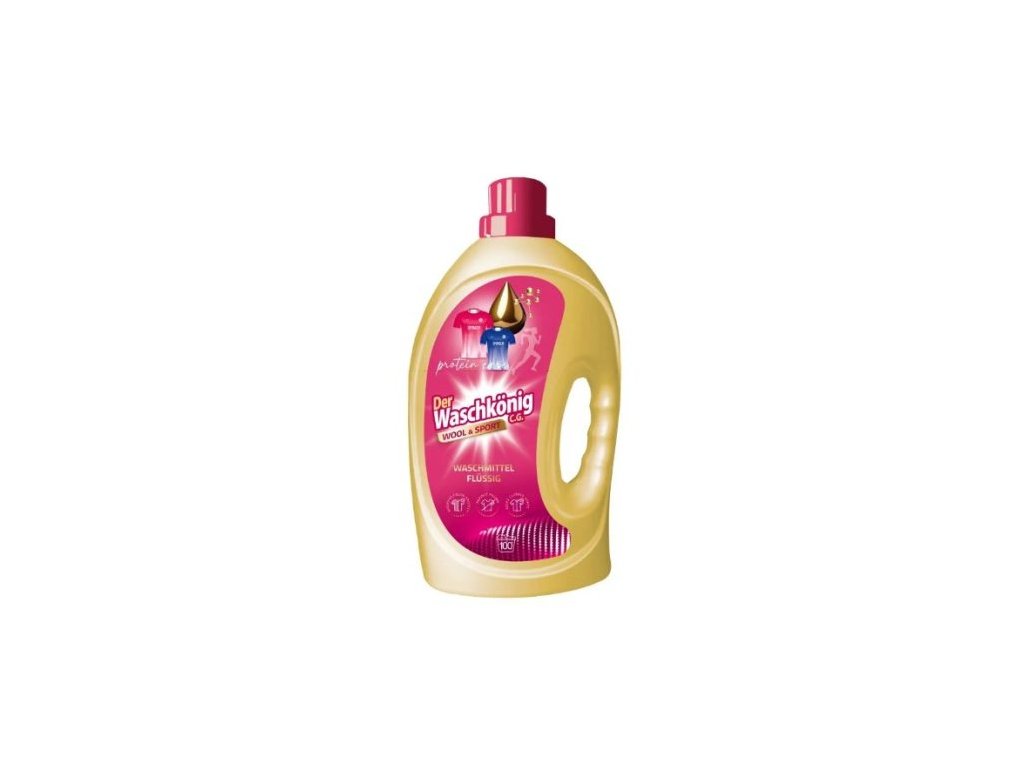WaschKönig Protein Care Wool & Sport to wysoce skuteczny, skoncentrowany żel do prania, opracowany specjalnie do delikatnej odzieży sportowej i wełny . Ten niemiecki produkt o pojemności 3 litrów wystarcza na 100 prań , co stanowi ekonomiczne i skuteczne rozwiązanie do codziennego prania. Żel idealnie nadaje się do delikatnych tkanin , takich jak wełna, lycra, elastan i materiały sportowe, zapewniając idealną czystość i pielęgnację , przedłużając tym samym ich żywotność.