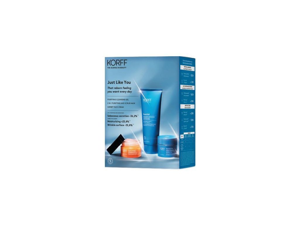 ZESTAW PREZENTOWY KORFF DO CERY JASNEJ - Sorbet Hydr.en.C 50ml, żel oczyszczający 200ml, maska oczyszczająca, peeling 2w1 50g;